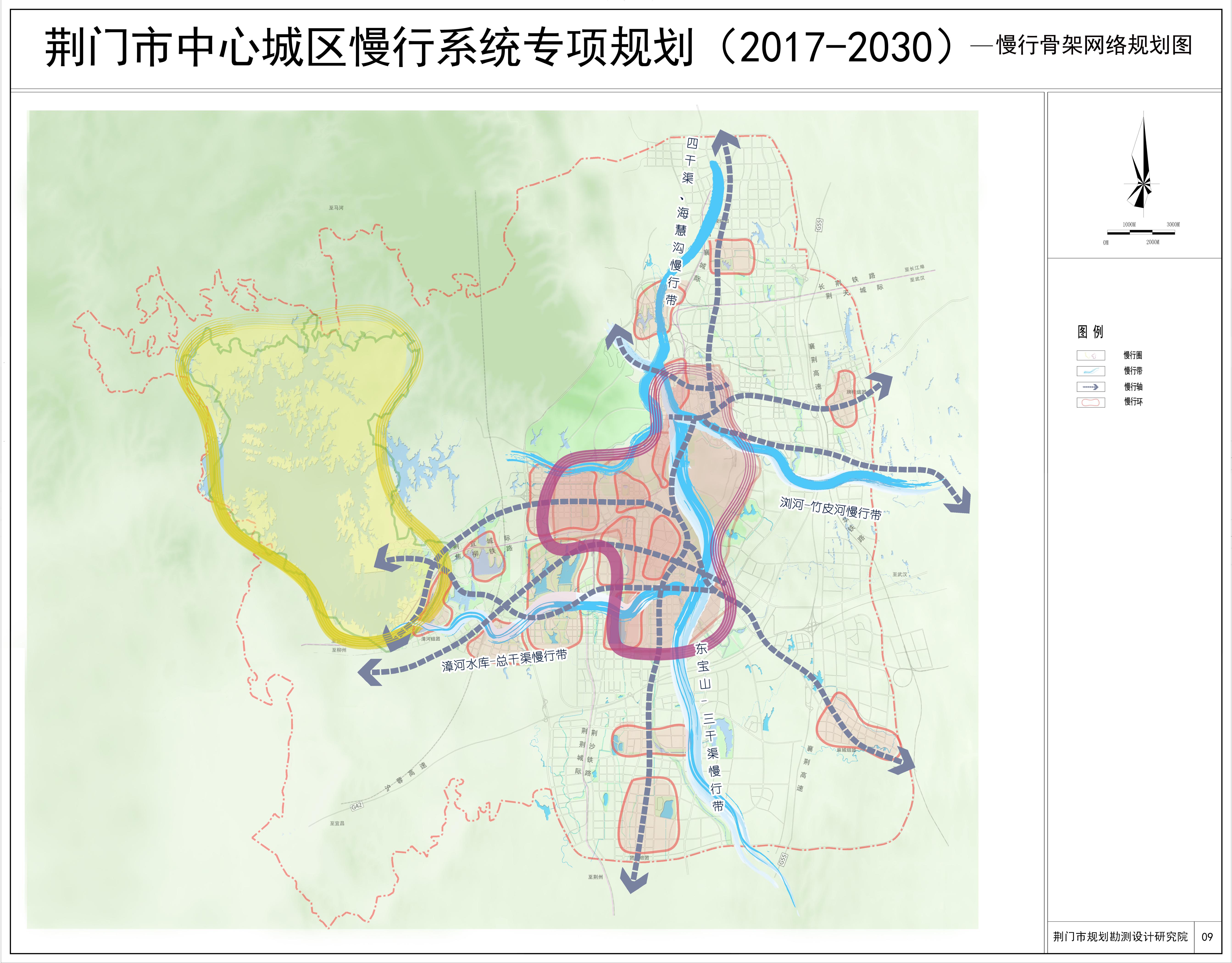 “九轴”即规划沿荆襄大道、象山一路-月亮湖路、白庙路、迎宾大道、白云大道-G207、深圳大道(G348)、爱飞客大道-关公大道、漳河大道形成九条城市慢行轴。