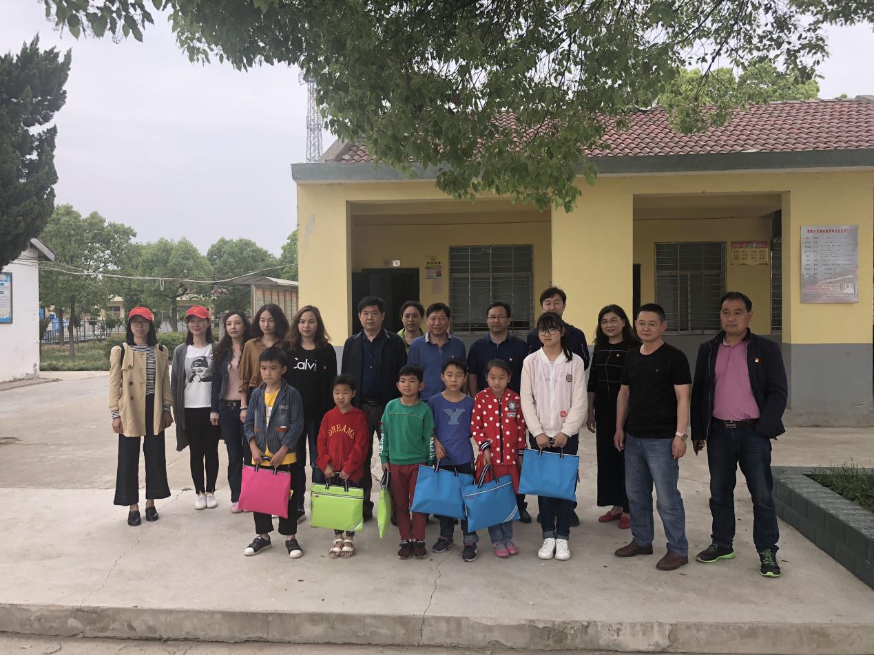 现场为留守儿童赠送文具,与他们合影留恋